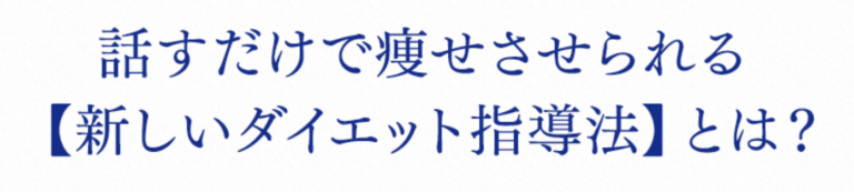 新しいダイエット指導法とは、つまり指導する側が押し付けずに結果が出る「話すだけダイエット」であり、その中身は「お客様が自ら行動した結果、自然に痩せるカウンセリングノウハウ」です。