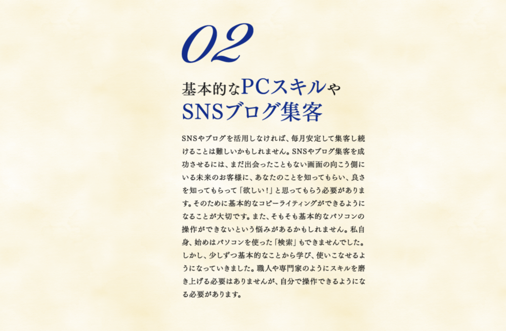 今思えば、施術の知識や技術とサロンの集客はまったく別物なのに、技術だけでうまくいくと思い込んでいたんですよね。