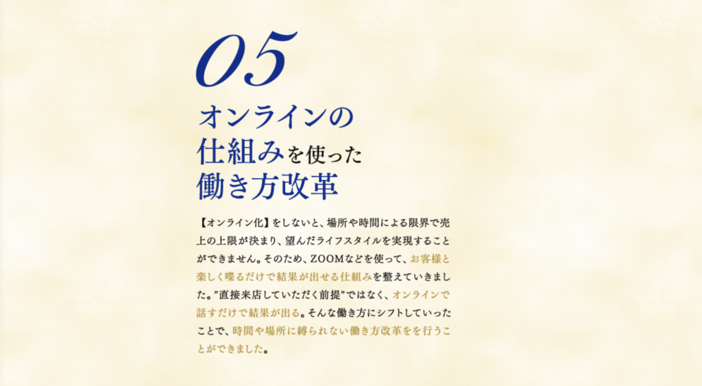 ”精神的な余裕”が生まれる - オンライン化できていて、”話すだけ”なので在庫も要らず、何歳になっても継続できる