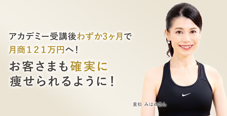 きめ細やかな指導に、これならば絶対に痩せたくても痩せられない方達を助けられる!と、自信と確信しか無く、お客様に心から自信を持ってお伝えできるようになりました。入学後、間も無く、コースの販売にも繋がり、サロン売り上げも大きく変わりました。